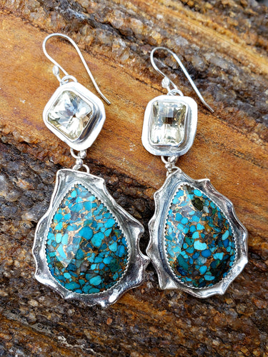 Golden Labradorite and Faceted Kingman Turquoise Earrings