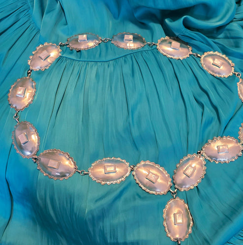 Turquoise and Silver Ruffle Bow -Hair Pick or Fork